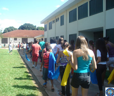 As equipes receberão tnt, velas e sal, deverão sair em procissão para o círculo pré marcado mas com a vela apagada nas mãos, os grupos ficarão no círculo que tem a sua cor (azul, verde, amarela, branca, vermelha).